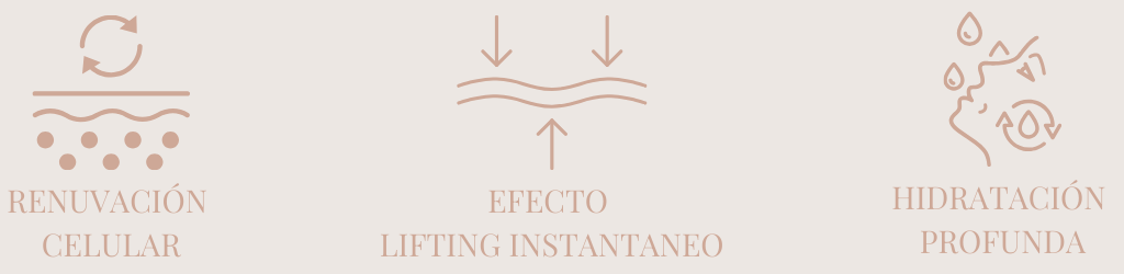 Ácido hialurónico hidrata profundamente desde las capas internas, suavizando y rellenando la piel.